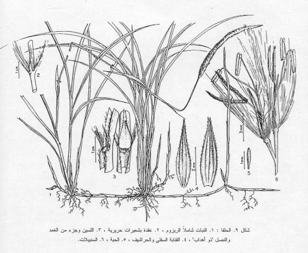 ينتمى هذا النبات في موطنه الأصلي إلى العالم القديم، وهو حشيشة نجيلية معمرة تكون ريزومات طويلة متصلبة زاحفة ذات حراشيف. وللنبات سنبلة زهرية جذابة، كثيفة زغبيه ذات لون أبيض فضي. ويعتبر النبات خطراً رئيسياً في المناطق شديدة الأمطار في الأنحاء الاستوائية، على رغم وجوده أيضاً في المناطق الدافئة. ويوجد النبات في كل قارات العالم جميعها، وهو أسوأ الحشائش النجيلية المعمرة في غرب وشرق آسيا. وقد سجلته 73 دولة كحشيشة ضارة في 35 محصولاً مختلفاً في نظم زراعته كالطماطم وجوز الهند. ويدخل النبات إلى حقول العديد من المناطق حال التحول في نظام زراعتها، وقد يتسبب في جَدَبها والاقلاع عن فلاحتها في زمن قصير. وقد تسبب هذا في تكوين امتدادات شاسعة من الحشيشة في قارتي آسيا وأفريقيا. وقد قدرت المساحة الموبوءة بهذه الحشيشة بشدة في زراعات المطاط في ماليزيا بأكثر من مليوني هكتار. ويوجد 15-30 مليون هكتار مغطاة بهذه الحشيشة في إندونيسيا، بجانب 150000 هكتار تغزوها الحشيشة سنوياً. وفى أطوار النمو الأولى يكون النبات مستساغاً للماشية، ولهذا فكثيراً ما تحرق تجمعات الحشيشة لتنبيه نمو نباتات جديدة. ويشكل النبات مصدراً ممتازاً لتسقيف البيوت، وقد بذلت جهود ضخمة لاستغلال النبات في صناعة الورق في أفريقيا وآسيا وجنوب أوروبا.