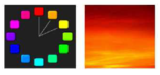 فإذا خترنا اللون الأحمر كلون أساسي، يمكن اختيار اللون البرتقالي كلون ثانوي.