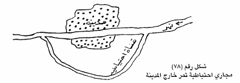د - إنشاء مجاري احتياطية للنهر تمر خارج المنطقة الحضرية يمكن استغلالها في أوقات الفيضان لحمل المياه الزائدة إلى خارج المدينة، أن تأخذ المياه من النهر قبل المدينة وتعيدها إليه بعد المدينة، ويمكن تحقيق فوائد أخرى من ذلك المجرى.