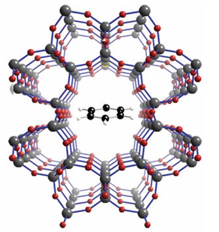 Figure 26.15 A view into the channels of zeolite theta-1 with an absorbed benzene molecule in the large central channel. (Based on A. Dyer, An introduction to molecular sieves. Wiley, Chichester (1988).)