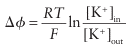 contribution to the potential difference ∆ across the membrane is