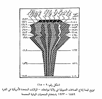 توضح هذه المنحنيات التغير فى مجموع الظاهرة الواحدة على مدى فترة زمنية أو التغير في مجموع الظاهرة وظاهرة أو ظاهرات أخرى بحيث يمثل التغير في مكونات أو اجزاء الظاهرة بمنحنيات بيانية بسيطة يعتبر كل منحني بها بداية القياس للمنحني الذي يليه، ثم تلون أو تظلل المساحات المحصورة بين المنحنيات، ولا تختلف طريقة رسم هذا النوع من المنحنيات عن الخطوط البيانية البسيطة، ولكن الاختلاف الوحيد بنيهما أن كل المنحنيات تمثل ظاهرة واحدة والمنحنى الواحد منها يمثل قسما واحدا من أقسام الظاهرة وعند انشاء هذا الرسم نقوم أولا يتقسم الظاهرة إلى أجزائها المختلفة بشرط أن تكون بنفس الترتيب لكل فترة زمنية، ثم نوقع القيم الخاصة بالقسم الأول للظاهرة ونصل بين نقط التقسيم بمنحنى ليكون أول منحني على الرسم وبعد ذلك نقوم بجمع قيم القسم الأول على قيم القسم الثاني للظاهرة وتوقع على قيم المجموع على الرسم ونصل بين نقط التقسيم بمنحنى ليكون المنحنى الثاني فيحصر بينه وبين المنحنى الأول مساحة على الرسم تمثل القسم الثانى من الظاهرة وبنفس الطريقة نكمل عملية التمثيل البياني لجميع أقسام الظاهرة، وفى النهاية نقوم بتظليل المساحات المحصورة بين هذه المنحنيات ويمكن رسم هذا النوع من الرسوم على أساس تمثيل توزيع عدة ظواهر في مكان واحد خلال فترة زمنية، مثل توزيع قيمة إنتاج الصناعات التحويلية في احدى الولايات الامريكية (نيوانكلند) في الفترة 1889 - 1935 وفي كل حالة من هذه الحالات تظهر أهمية هذا الرسم في أنه يمكن منه مباشرة تحديد حجم كل قسم من أقسام الظاهرة بالنسبة لباقي الأقسام المقارنة للظاهرة. كما يمكن استخدام النسب المئوية بدلا من القيم المطلقة كأساس لإنشاء هذا الرسم والذي يمكن منه، في هذه الحالة، معرفة عما إذا كانت نسبة أي قسم من أقسام الظاهرة قد هبطت أو زادت في نفس الوقت بالنسبة إلى باقى التقسيمات الفرعية الأخرى للظاهرة قيد التمثيل.