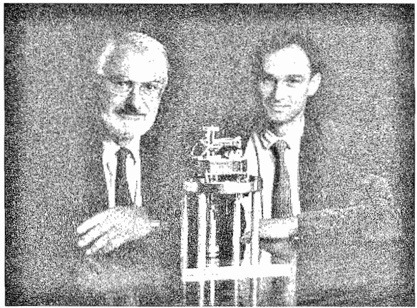 شكل (1) المجهر النفقي الماسح ومخترعاه العالمان الألماني جيرد بينيج (يمين) والسويسري هنريش روهرير