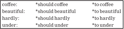 In contrast, the following words do not pass the should or to test:
