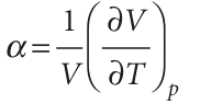It is usually sensible in thermodynamics to inspect the output of a manipulation like this to see if it contains any recognizable physical quantity. The partial derivative on the right in this expression is the slope of the plot of volume against temperature (at constant pressure). This property is normally tabulated as the expansion coefficient, α, of a substance,7 which is defined as