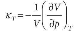 The isothermal compressibility is a measure of the fractional change in volume when the pressure is increased by a small amount; the negative sign in the definition ensures that the compressibility is a positive quantity, because an increase of pressure, implying a positive dp, brings about a reduction of volume, a negative dV.
