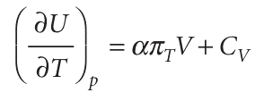 This equation is entirely general (provided the system is closed and its composition is constant). It expresses the dependence of the internal energy on the temperature at constant pressure in terms of CV, which can be measured in one experiment, in terms of α, which can be measured in another, and in terms of the quantity πT. For a perfect gas, πT = 0, so then