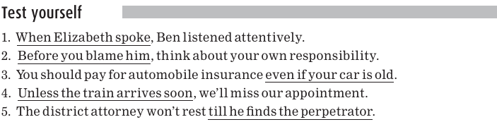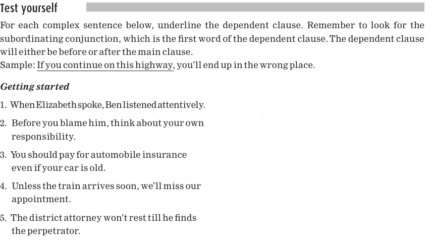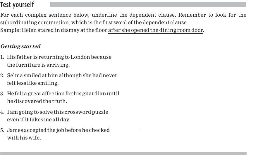 The main clause of each of the following sentences is in bold; the dependent clause is underlined: