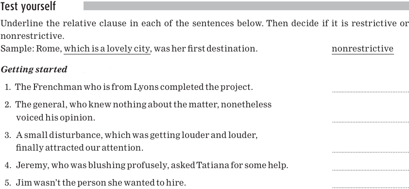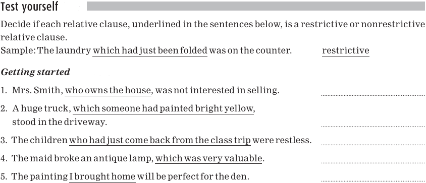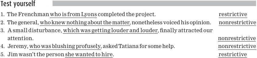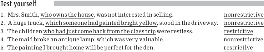 When we look at relative clauses more closely, we find that there are actually two types: restrictive relative clauses and nonrestrictive relative clauses. Compare the following sentences; the relative clauses are underlined.