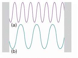 Fig. 8.5 The electromagnetic vacuum can be regarded as able to support oscillations of the electromagnetic field. When a high frequency, short wavelength oscillator (a) is excited, that frequency of radiation is present. The presence of low frequency, long wavelength radiation (b) signifies that an oscillator of the corresponding frequency has been excited.