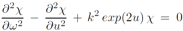 Once again we see that unless k = 0, there is a potential confining quanta to the region near the horizon. Qualitatively, the behavior of a quantum field in a black hole background differs from the Rindler space approximation in that for the black hole, the potential barrier is cut off when ρ = eu is greater than MG. By contrast, in the Rindler case V increases as eu without bound.
