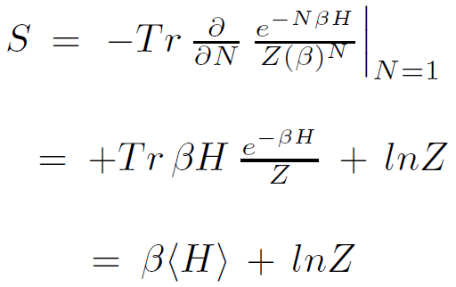 Defining E = <H> and F = −1/β logZ we find the usual thermodynamic identity