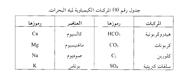والجدول رقم (9) التالي يبين أن أهم المركبات الكيمياوية.