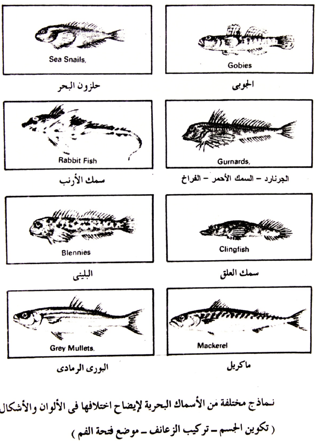 هذا عدا الاختلاف بين الاسماك من حيث مدى وجود الفك وشكل الاسنان وعددها وتوزيعها على الفكين وغيرها مما يستخدم في التعرف على انواع الاسماك.