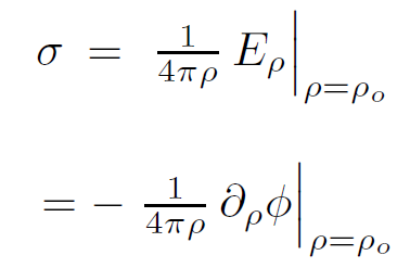 We can easily identify the surface current density. Taking the time derivative of equation 1.7 and using Maxwell's equations 1.6 gives