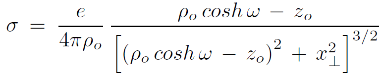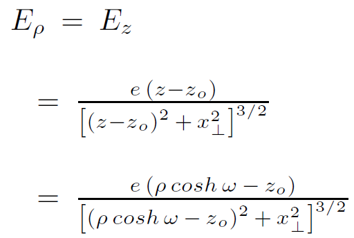 with the transverse charge density remaining point-like. However this is not at all what happens on the stretched horizon. This process is shown in Figure 1.2. Without loss of generality, we can take the charge to be at rest at position zo in Minkowski coordinates. To compute the surface charge density on the stretched horizon, we need to determine the field component Eρ. The calculation is easy because at any given time the Rindler coordinates are related to the Minkowski coordinates by a boost along the z-axis. Since the component of electric field along the boost direction is invariant, we can write the standard Coulomb field