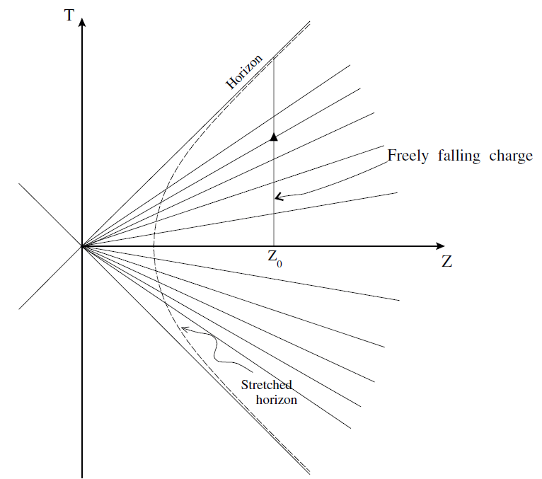 Fig. 1.2. Charge falling past the stretched horizon.