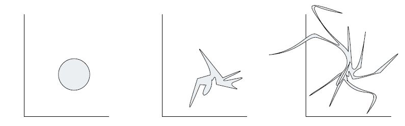 Fig. 1.1. Evolution of a fixed volume in phase space.