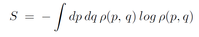 A more refined definition of information is provided by the concept of entropy. Suppose that instead of specifying a region Γ in phase space, we instead specify a probability density ρ(p, q) in phase space. A generalization of the volume is given by the exponential of the entropy VΓ → exp S, where