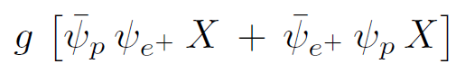 In fact, most modern theories predict baryon violation by ordinary quantum field theoretic processes. As a simplified example, let's suppose there is a heavy scalar particle X which can mediate a transition between an elementary proton and a prositron, as well as between two positrons, as in Figure 1.1. Since the X-boson is described by a real field, it cannot carry any quantum numbers, and the transition evidently violates baryon conservation. The proton could then decay into a positron and an electron positron pair. Let's also assume that the coupling has the usual Yukawa form