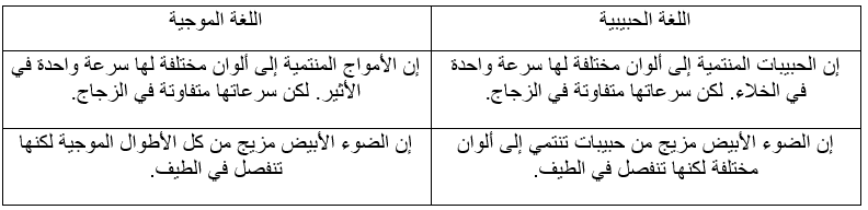 ينتج من كل ما تقدم أن تجارب نيوتن في تبديد الضوء يمكن أن تشرح بلغتين مختلفتين: