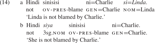 The reason these elements are classified as special clitics is that their position is not determined by normal syntactic rules. For example, regular (non-pronominal) NPs do not occur before the verb even when a pre-verbal negative marker or adverb is present. Compare the position of the nominative NP si Linda in (14a) with the corresponding pronoun siya in (14b).