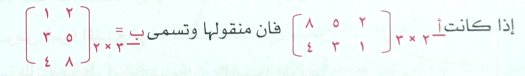 هي مصفوفة مشتقة من مصفوفة معلومة بجعل صفوفها أعمدة وأعمدتها صفوف أي تبديل الصفوف بالأعمدة والأعمدة بالصفوف كما يلي :