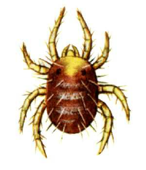 - بيضاوي الشكل. الجسم غير مقسم الى حلقات توجد على الظهر بقعتان سوداوتان لذلك يسمى في بعض الاحيان بالاكاروس ذي البقعتين.