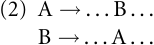 We are restricted to what may be called direct recursion to distinguish it from other kinds of recursion, such as indirect recursion, where there is not one recursive rule but a recursive ‘‘loop’’, in that two (or more) rules jointly produce recursion, as in the set of rules of (2).3 Indirect recursion raises a number of issues that would be beyond the scope of the present treatment; hence, we will have nothing to say about it and its implications for language evolution.
