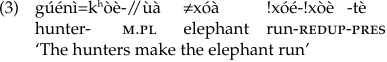 Here, in contrast to (2b), ‘elephant’ does not bear a gender–number suffix, and object agreement morphology fails to appear on the verb.