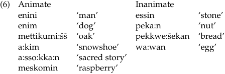 We can compare German to Ojibwa, an Algonquian language discussed by Corbett (1991: 20–2). Ojibwa has two genders, animate and inanimate (but note that some inanimate objects have grammatically animate forms):