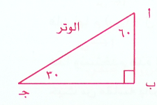 وهناك حالة خاصة للمثلث القائم الزاوية الذي زواياه 90 ْ ، 60 ْ ، 30 ْ كما في الشكل حيث الضلع المقابل للزاوية 30 يساوي نصف الوتر .