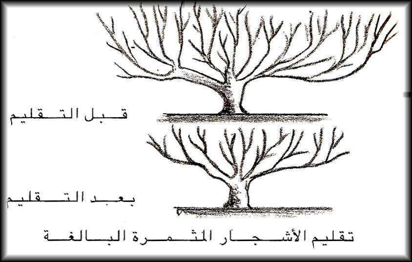 أولا: تقليم التربية: ويجرى على الأشجار الصغيرة بغرض تكوين هيكلها ويتم كالآتي: