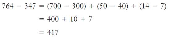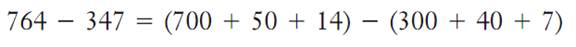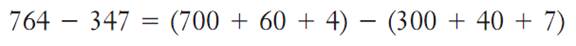 764- 347 = (700+ 50 + 10 + 4) - (300 + 40 + 7)