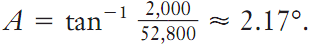 Calculating a Road’s Angle of Elevation. Using the inverse trigonometric functions, one can also determine the angle of elevation if only the sides of a triangle are known. Suppose a road increases in altitude from 1,400 feet to 3,400 feet over the span of 10 miles (52,800 feet). See part (c) of the figure. The average angle of elevation of the road, called A, can be found by solving the equation tanA =2,000/52,800. To solve for angle A, the inverse tangent of both sides must be taken. This can be denoted as tan-1A. The result is