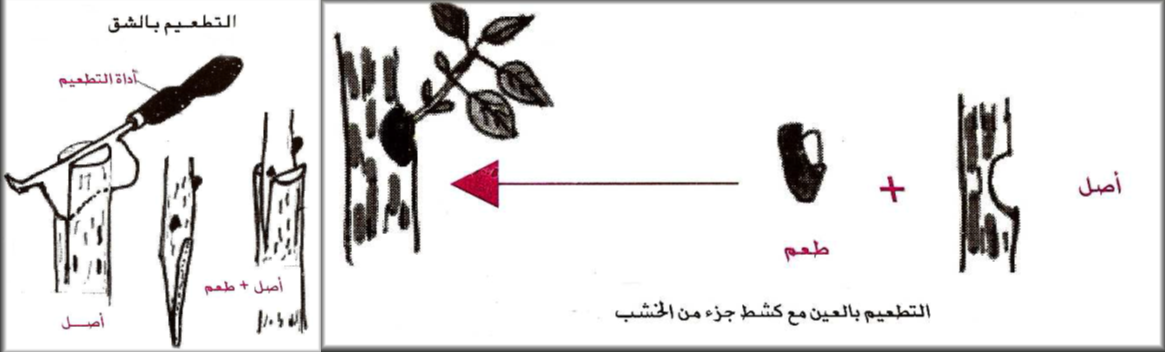 يتم بعد ذلك إجراء عملية التطعيم في المشتل خارج الصوبة مع مراعاة العناية التامة عند نقل الشتلات نظرًا لسهولة تمزق الجذور، وأن تحفظ رطبة مع عدم تعريضها للجفاف . وتتم عملية التطعيم من مارس – مايو حيث تؤخذ الطعوم من أفرع قوية سليمة من نمو العام السابق في الفترة من يناير – منتصف فبراير وتخزن رطبة قليلا في أكياس البولي ايثلين على درجة صفر م حتى ميعاد التطعيم.