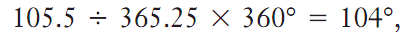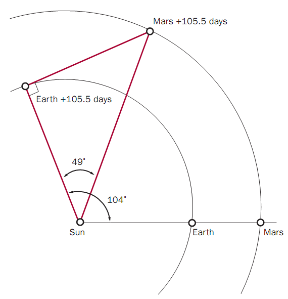and Mars had moved through only 105.5÷687 x 360° =55°.