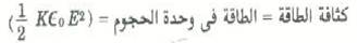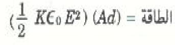 يلاحظ أن المقدار (Ad)) هو حجم الحيز بين لوحي المكثف ــ او بتعبير آخر. الحجم الذي يكون فيه المجال الكهربي ثابتاً. عند قسمة طرفي المعادلة على الحجم فإننا نخصل على تعبير للطاقة في وحدة الحجوم ، أي الطاقة التي نتصور انها مختزنة في وحدة الحجوم من تلك المنطقة التي يكون المجال الكهربي فيها هو E: