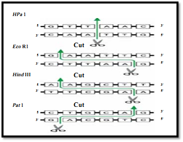 ويوضح الجدول (1) تسلسل مواقع القطع Recognition sites لبعض الانزيمات القاطعة كالاتي :