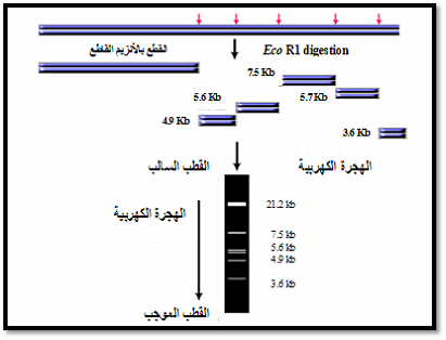 شكل (3) : قطع الدنا بأنزيمات القطع على لوح جل الاجاروز