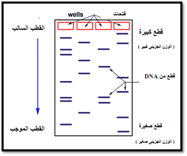 شكل (4) : قطع DNA على لوح من الجل بالكهرباء