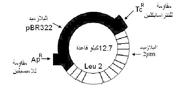 1- (YEP) Yeast episomal plasmid الذي حضر من البلازميد 2µm والبلازميد البكتيري pBR322 وبحجم يقرب من 12.7 كيلو قاعدة والموضح تركيبه في الشكل (1).