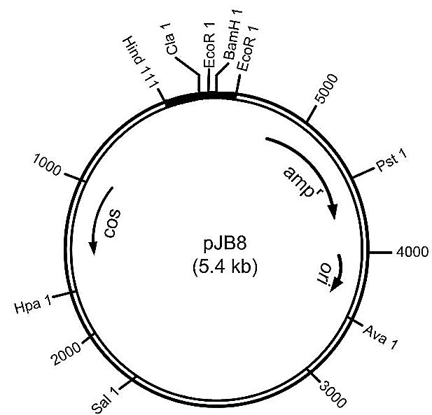 شكل 1 : خارطة الكوزميد pJB8 المستعمل في نقل جينات الخلايا حقيقية النواة