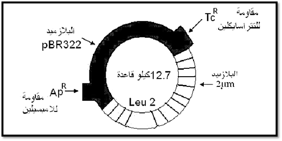 1- (YEP) Yeast episomal plasmid الذي حضر من البلازميد 2µm والبلازميد البكتيري pBR322 وبحجم يقرب من 12.7 كيلو قاعدة والموضح تركيبه في الشكل (11).