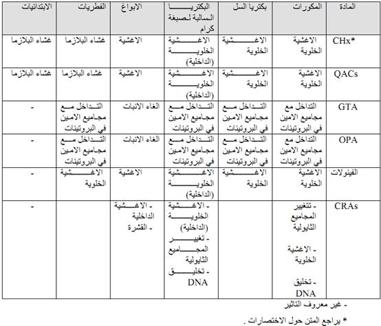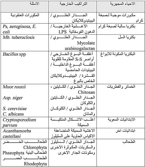 الاهداف التي تعمل عليها المضادات الميكروبية : بالرغم من اختلاف الاحياء المجهرية من النواحي التركيبية والفسلجية ودرجة التعقيد ولكن توجد أهداف عامة يمكن ان تهاجم من قبل القاتلات الحيوية ومنها الموضحة في الجدول (2).