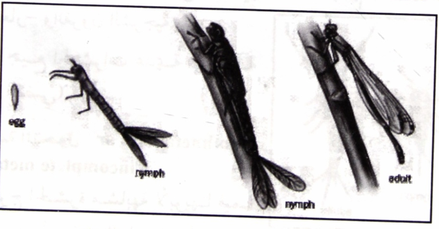- يتدرج شكل الحورية الى شكل الحشرة الكاملة على خطوات تدريجية.