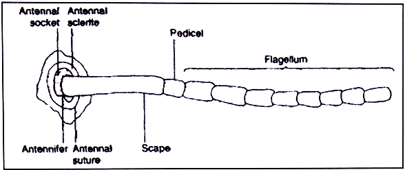 يتركب قرن الاستشعار في الحشرة من ثلاثة اجزاء وهي: