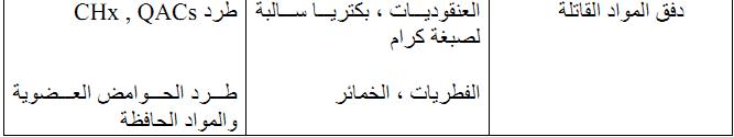 - التداخل والتفاعل بين المواد القاتلة و مواد الأغشية الحيوية.