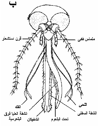 رسم تخطيطي يوضح اجزاء فم متحورة للمص (ابي دقيق)