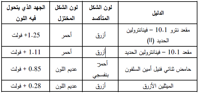 وهي عبارة عن مركبات عضویة یختلف لونها في الصورة المتأكسدة عن لونها في الصورة المختزلة كما هو الحال في دلائل التعادل ویتغیر لون الدلیل تبعاً لتغیر الجهد.